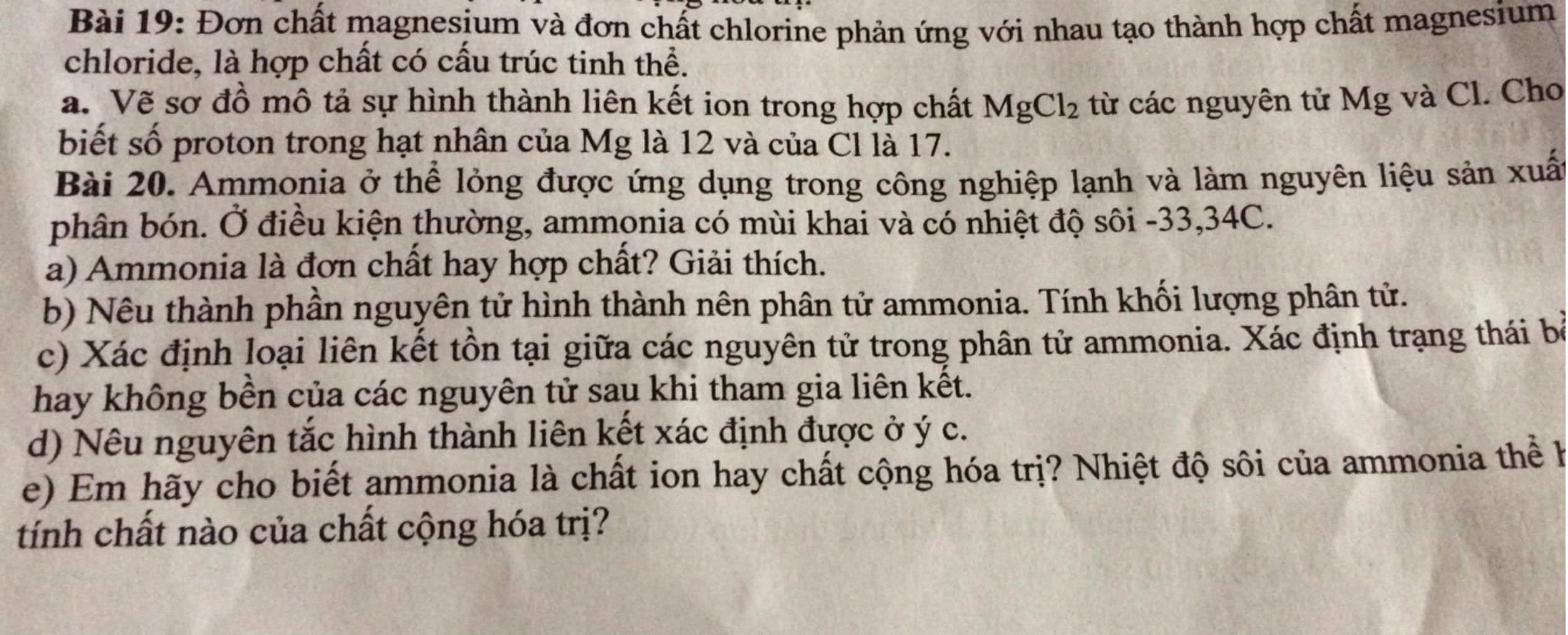 `e)` Ammonia là chất cộng hóa trị do tạo bởi 2 phi kim. Nhiệt độ sôi thấp thể hiện tính chất của chất cộng hóa trị.