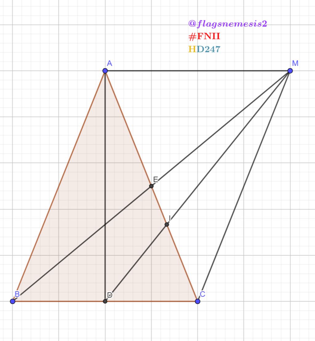$\Rightarrow I$ là trọng tâm của $\triangle BMC$