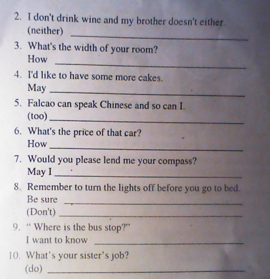 Mong đc mn giúp ạ.Hãy viết lại những câu sau với nghĩa tương tựu như những câu đã cho
