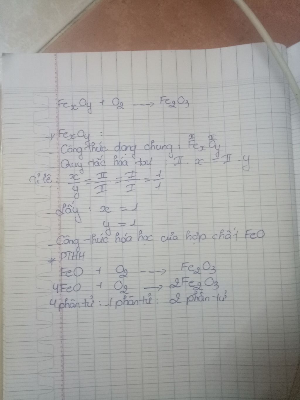 (nhớ thêm t° ở trên mũi tên biểu thị sắt (II) oxit đốt ở nhiệt độ cao trong không khí có khí oxi, thu được Sắt (III) oxit)