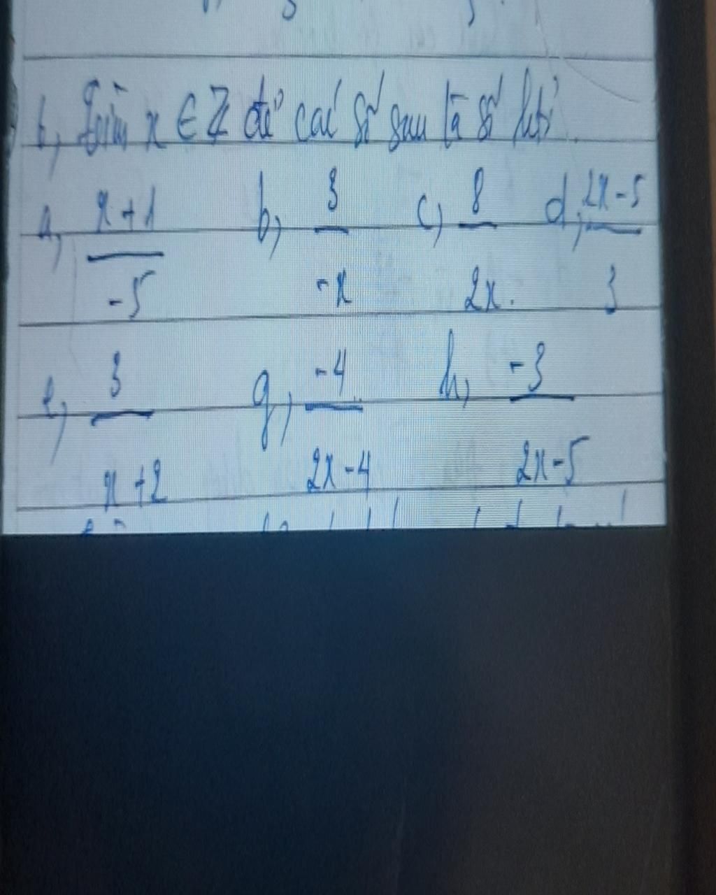 h.Để $\dfrac{-3}{2x-5}\in Q$