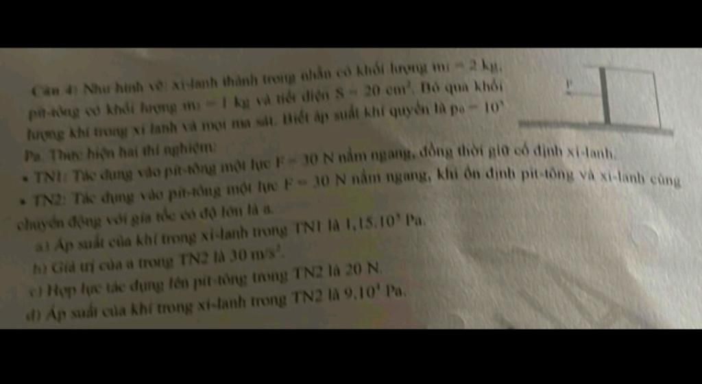 Độ lớn hợp lực tác dụng lên pít-tông là: `|F|=m_2*|a|=10 (N)`