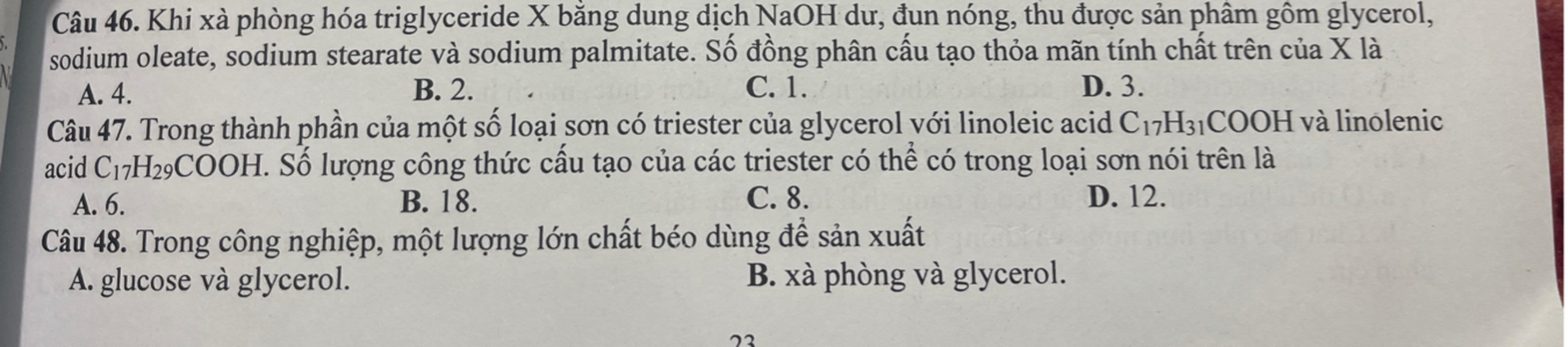 Do có 3 gốc acid, hoán vị của 3 gốc này được 6 đồng phân.