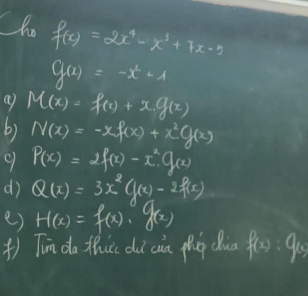 `Q(x)=(−3x^4 +3x^2 )−(4x^4 −2x^3 +14x−10) `