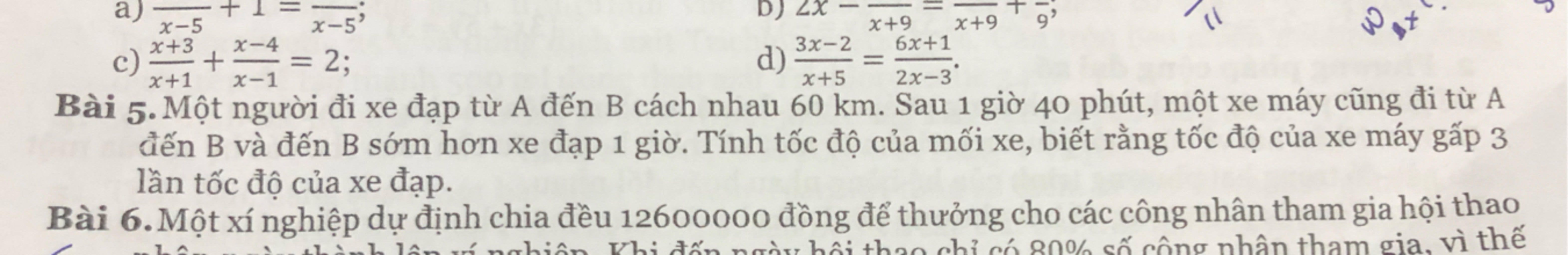 Vì giả thiết tốc độ của xe máy gấp 3 lần tốc độ của xe đạp nên ta có phương trình: