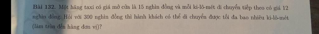 * Vậy với `300` nghìn đồng hành khác có thể di chuyển được quãng đường tối đa là : `24` `km`