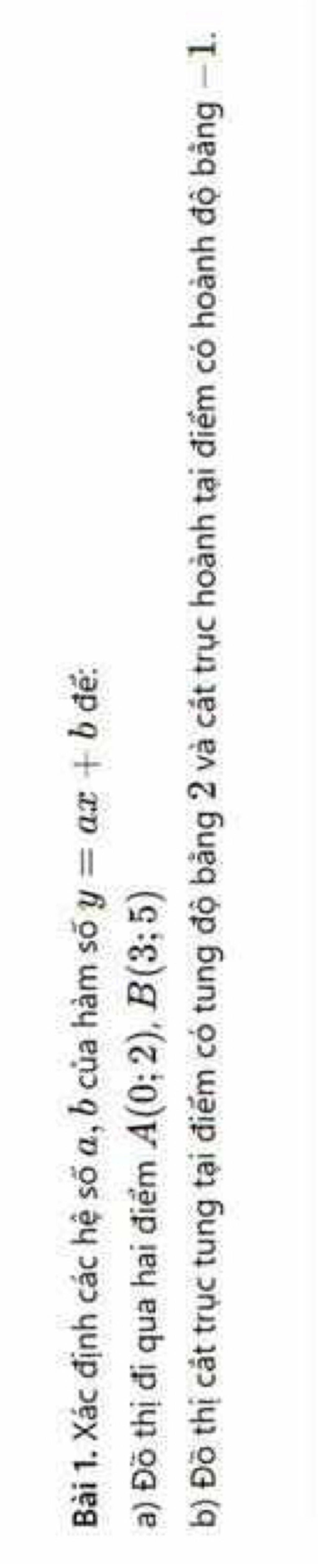 `y=ax+b` đi qua `A(0;2);B(3;5)`