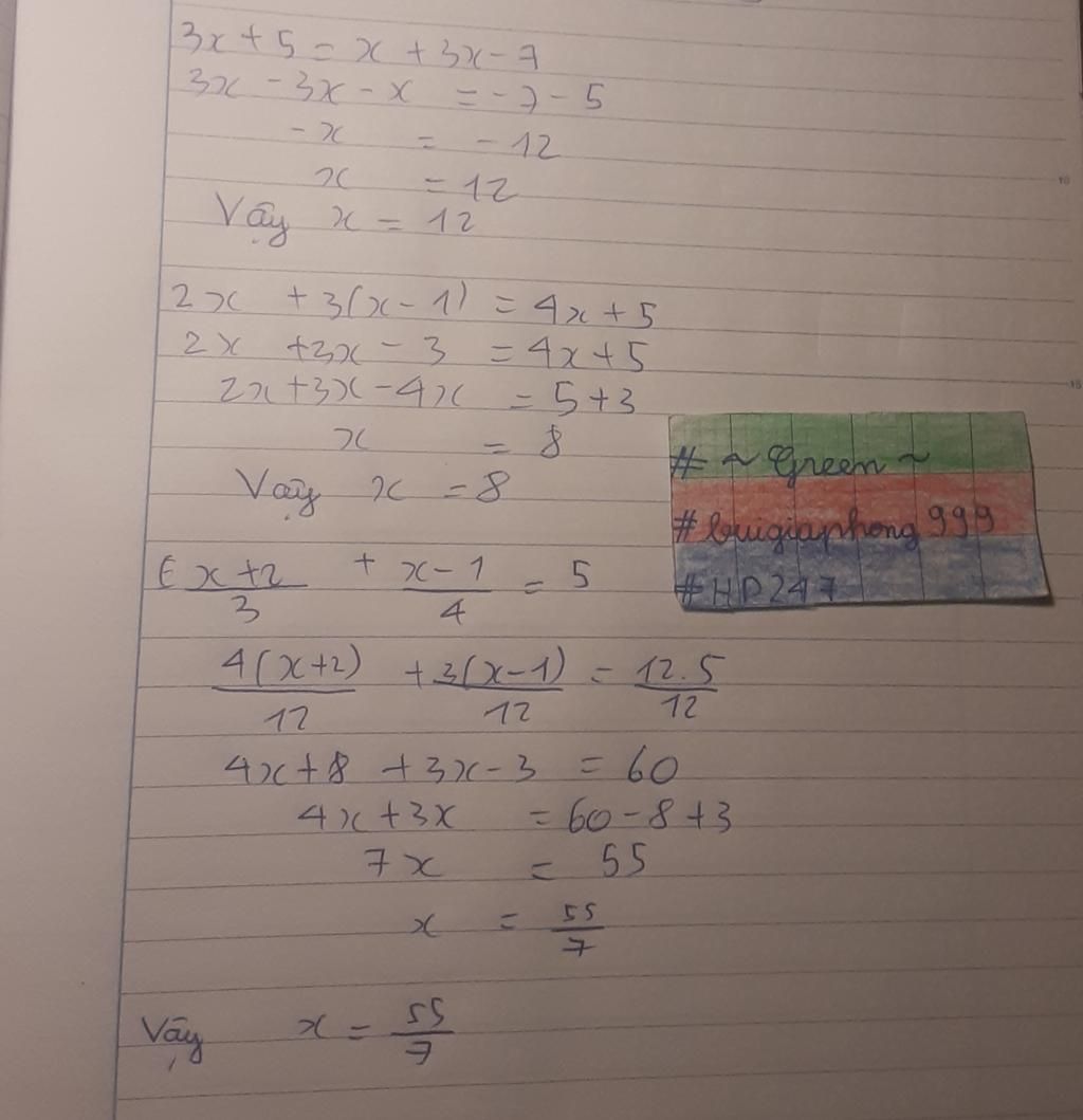 `3x +5 = x + 3x - 7`