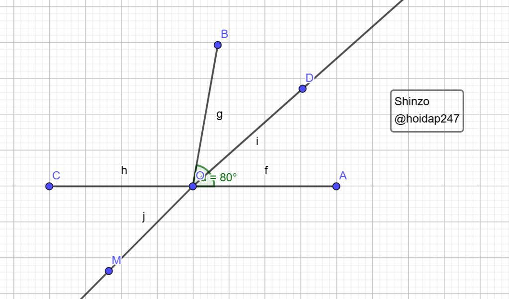 Ta có: `hat{MOA}=hat{COD}=140^o` (đối đỉnh)