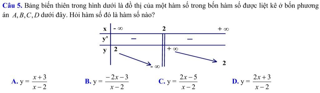 Ta thấy BBT giá trị $y'$ âm => xét đạo hàm của C và D