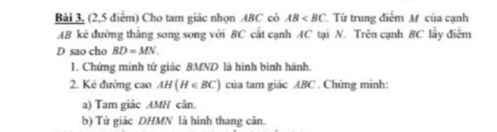Ta có: $MN // BH$