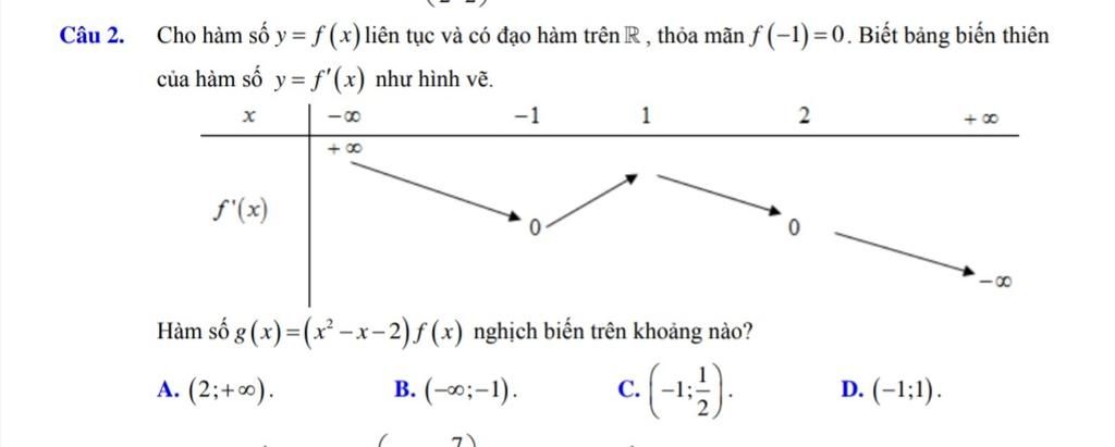 Hàm số g(x)=(x−x−2) f (x) nghịch biến trên khoảng nào?