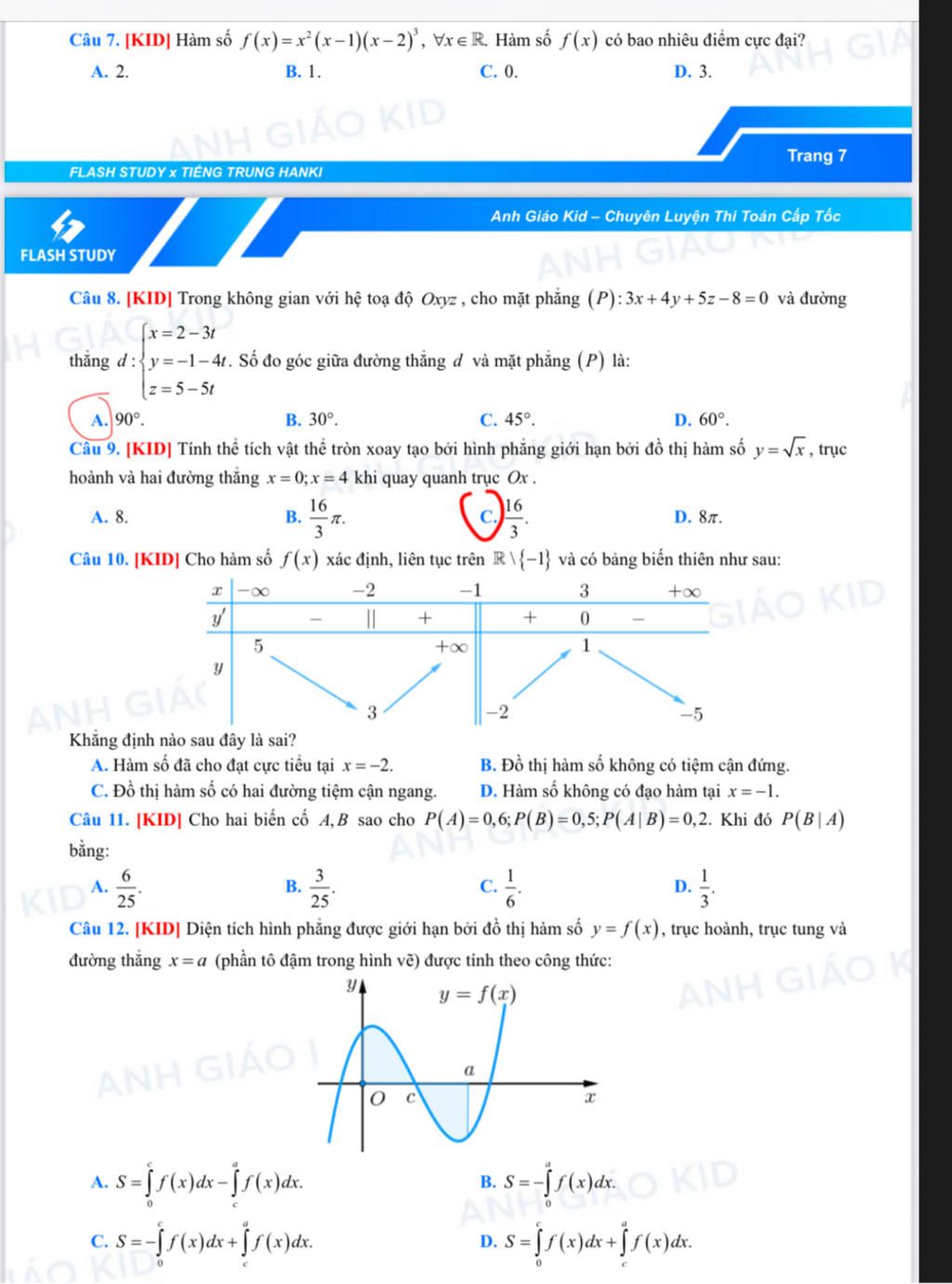 Cho `f'(x) = 0` `<=>`\(\left[ \begin{array}{l}x=0\\x=1\\x=2\end{array} \right.\)