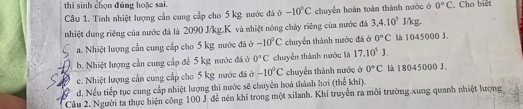 Nhiệt lượng cần cung cấp để $5kg$ nước đá ở nhiệt độ $-10^oC$ chuyển thành $5kg$ nước ở nhiệt độ $0^oC$ là: