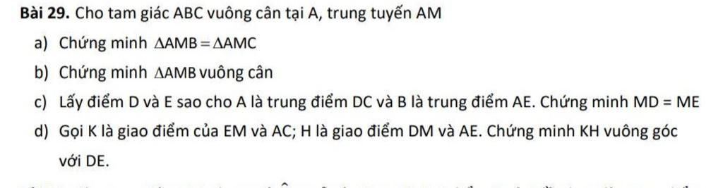 =>AM=1/2BC(nhận xét h.chữ nhật) mà BM=1/2 BC (AM là trung tuyến)