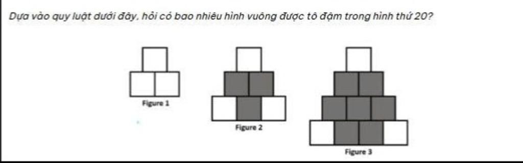Ta thấy mỗi hình số ô vuông không được tô là 3 nên ta lấy tổng số ô vuông ở hình thứ 20 trừ đi 3