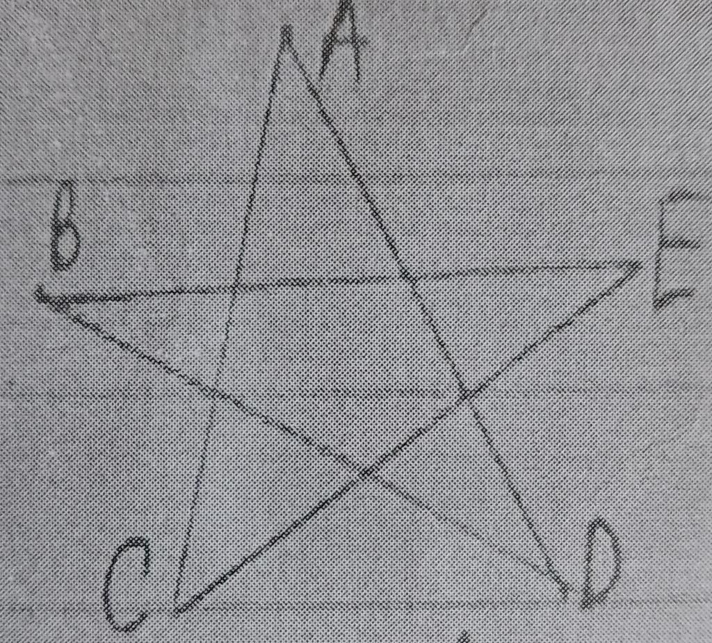 `->\hat{A}+\hat{B}+\hat{C}+\hat{D}+\hat{E}=360^o/2=180^o`