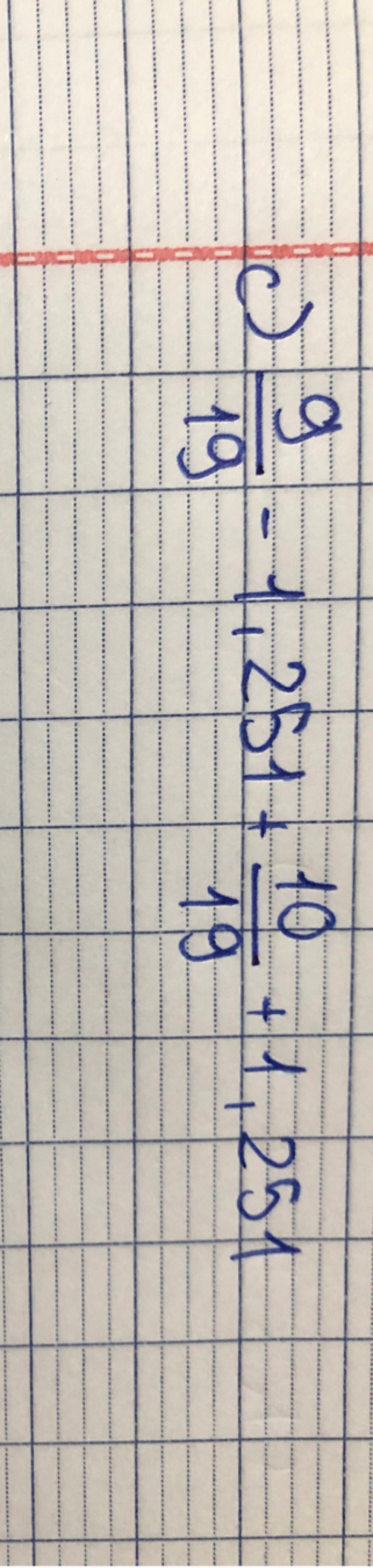 `= ( 9/19 + 10/19 ) + ( -1,251 + 1,251 )`