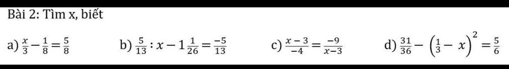 `1/3-x=1/6` hoặc `1/3-x=-1/6`