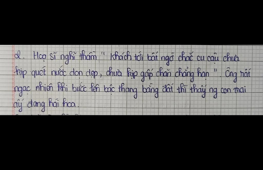 Họa sĩ nghĩ thầm "Khách tới bất ngờ chắc cu cậu chưa kịp quét nước dọn dẹp, chưa kịp gấp chăn chẳng hạn" .