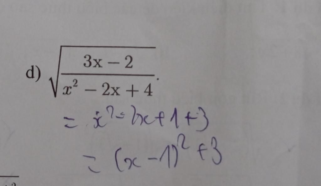 $\sqrt{\dfrac{3x - 2}{x^2 - 2x + 4}}$