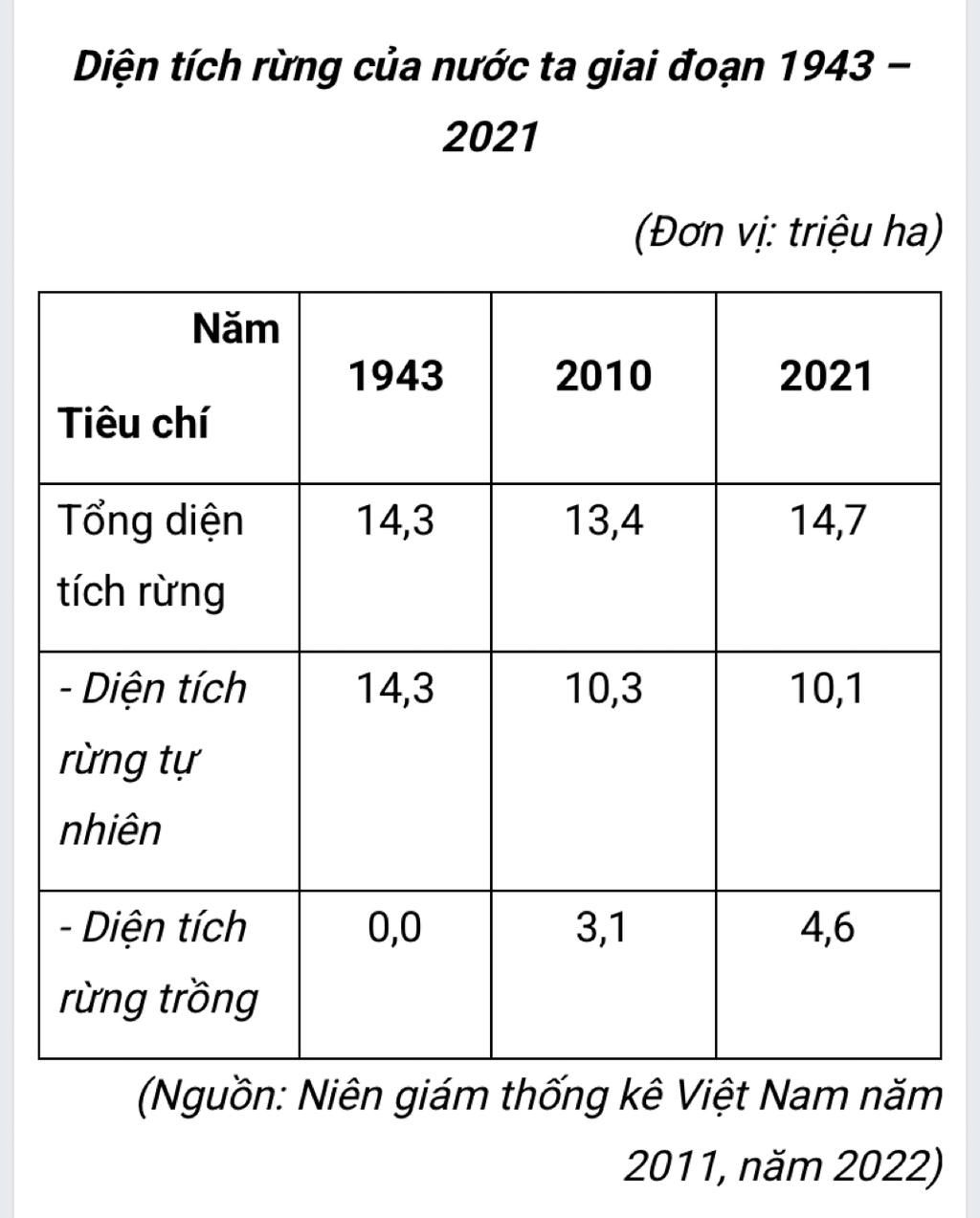 Từ năm 1943 đến năm 2022, diện tích rừng của nước ta tăng thêm bao nhiêu %? (làm tròn kết quả đến số thập phân thứ nhất của %)