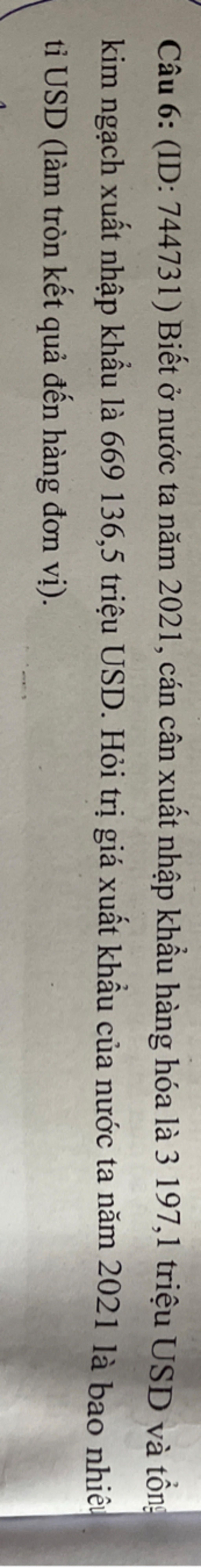 Gọi `x` là giá trị xuất khẩu `(x>0)`