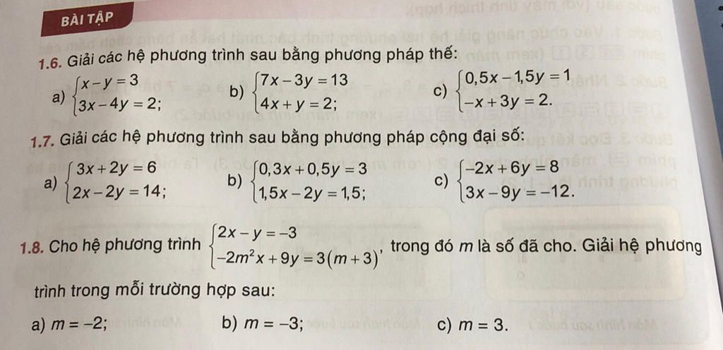 1.6. Giải các hệ phương trình sau bằng phương pháp thế: