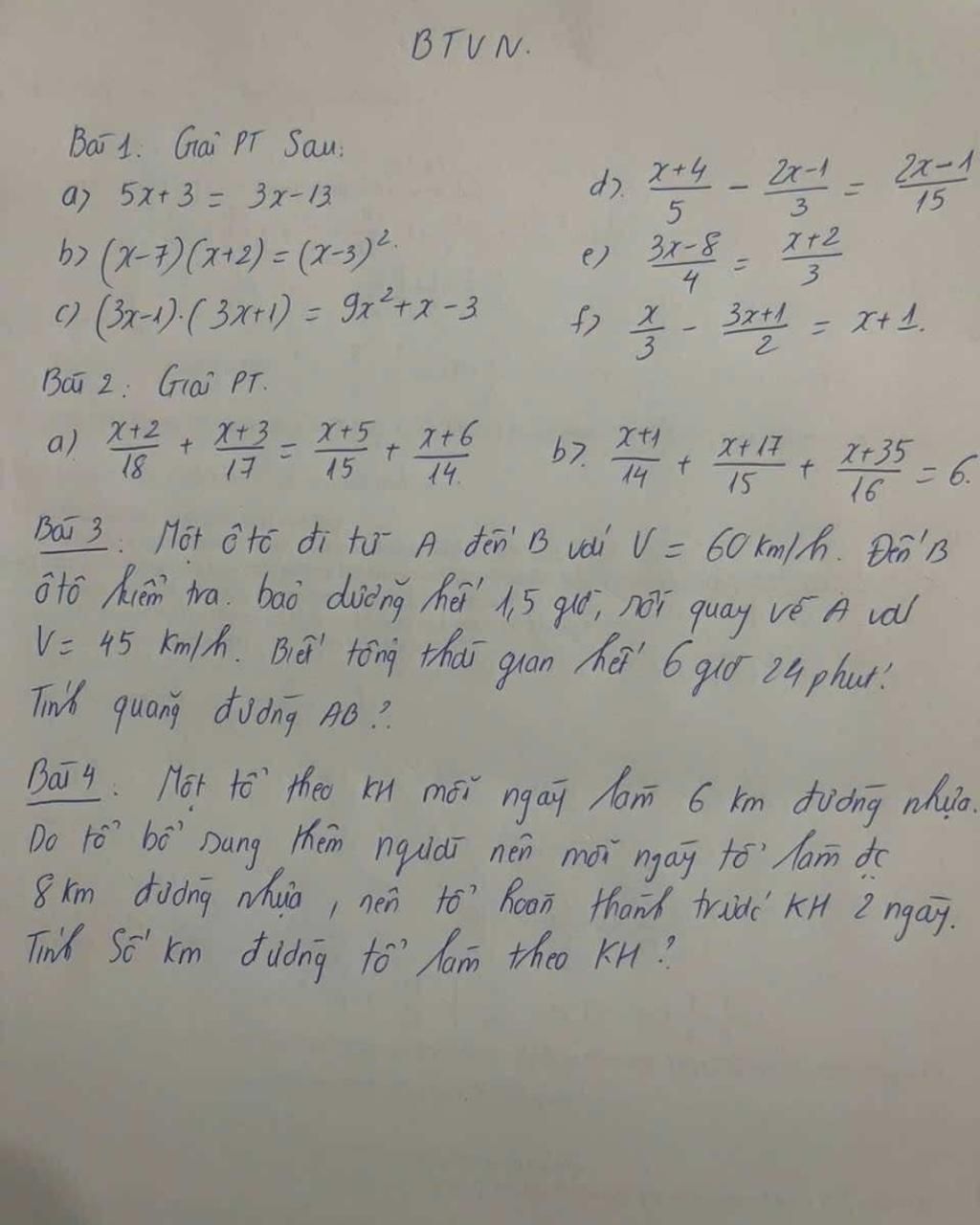 `<=> 3(x+4) - 5(2x-1) = 2x-1`