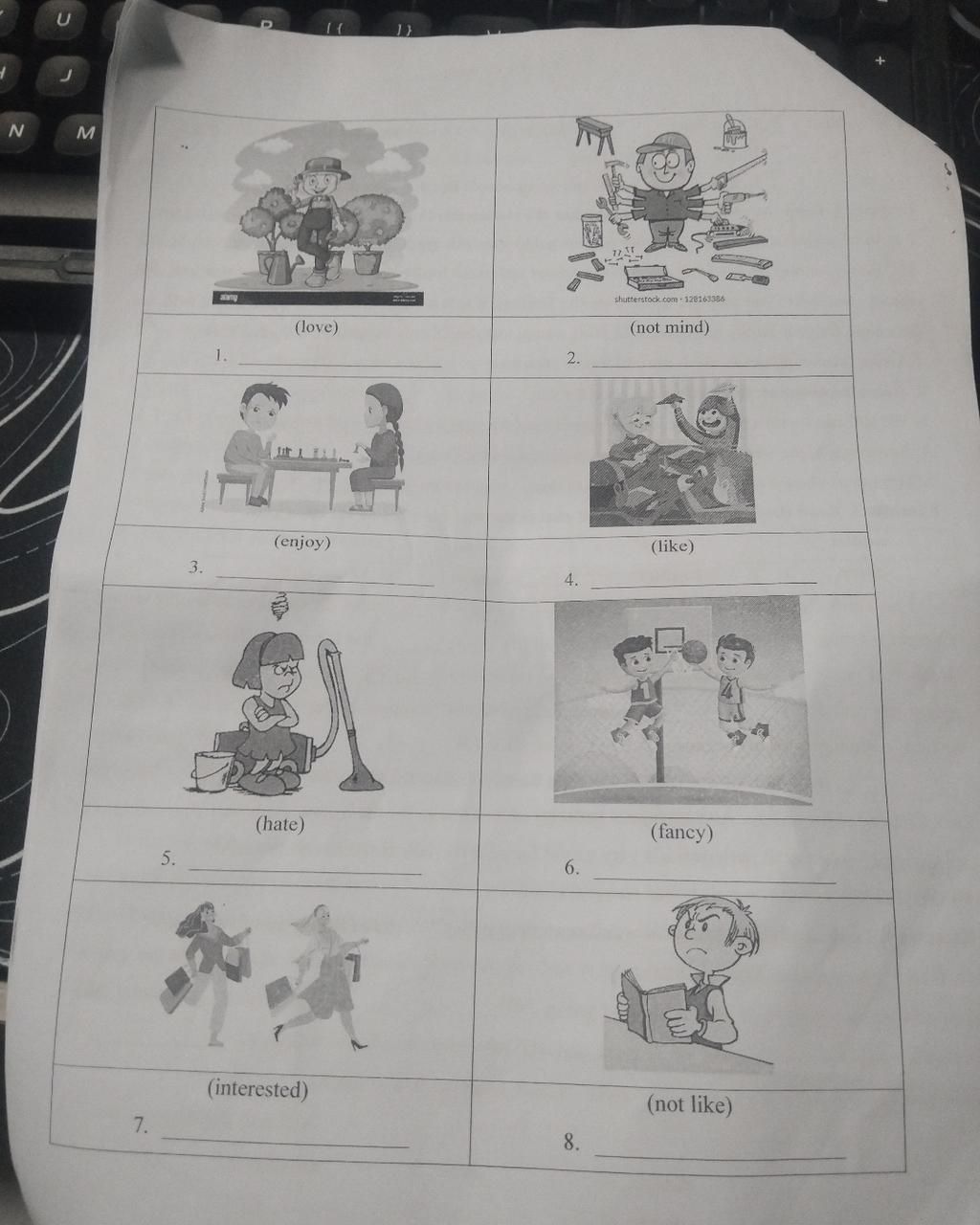 đề look at the pictuees and write sentnces using "verbs ò liking and disliking ,giúp em vớ ạ mai nộp r huhu