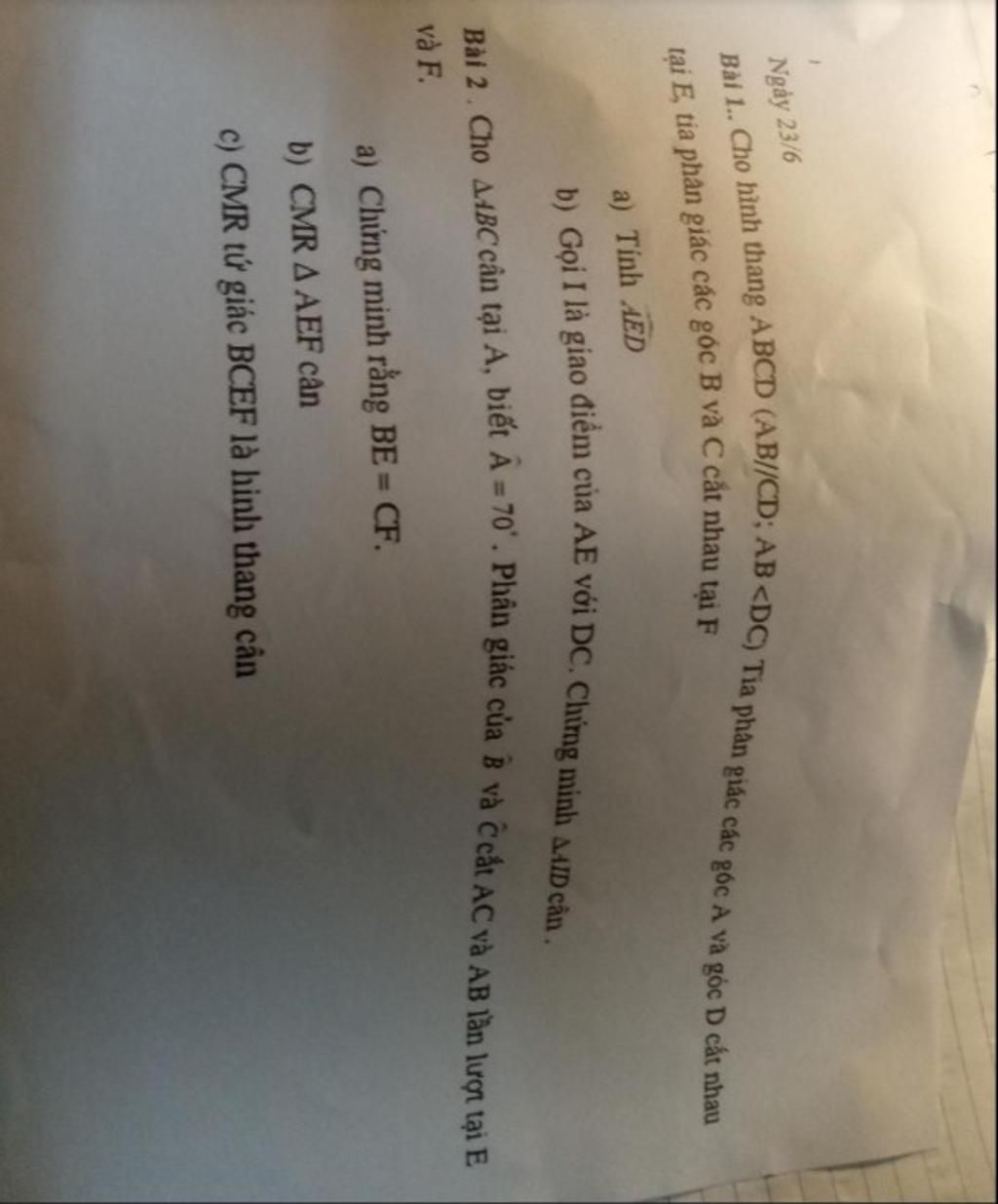 `Xét` `Δ` `AID` `có:` `DE` `là` `tia` `phân` `giác` `và` `DE` `vuông` `với` `AI` `` `tại` `E`