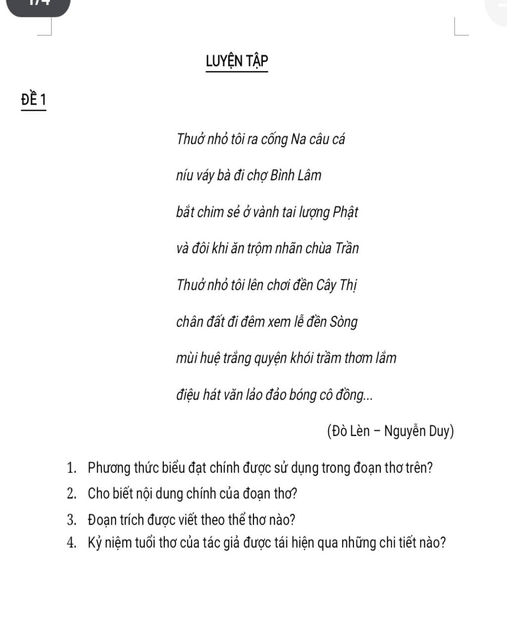 `-` Phương thức biểu đạt chính được sử dụng trong đoạn thơ trên là biểu cảm.