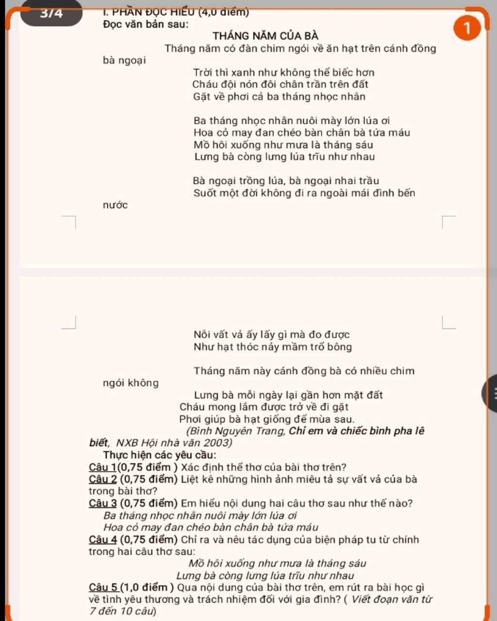 Bài thơ trên đã để lại trong em nhiều ấn tượng và cảm xúc về tình yêu thương và trách nhiệm đối với gia đình. Hình ảnh người bà tảo tần, vất vả hy sinh cả tuổi xuân của mình vì ruộng đồng, vì con cháu khiến em vô cùng xúc động. Bà không ngại nắng mưa, vất vả, tấm lưng còng nặng trĩu – tất cả đều toát lên sự hy sinh âm thầm và cao cả ấy. Qua đó, em nhận ra rằng tình yêu thương không nhất thiết phải thể hiện quá cấu kì, mà chính là những hành động giản dị những chan chứa cảm xúc chân thành và ấm áp. Em cần phải trân trọng những người thân trong gia đình, quan tâm, chia sẻ và giúp đỡ ông bà, cha mẹ nhiều hơn trong cuộc sống hằng ngày hay những khó khăn. Em sẽ cố gắng để trở thành một người có ích trong tương lai vì chính tình yêu thương đã nuôi dưỡng em qua từng năm tháng.