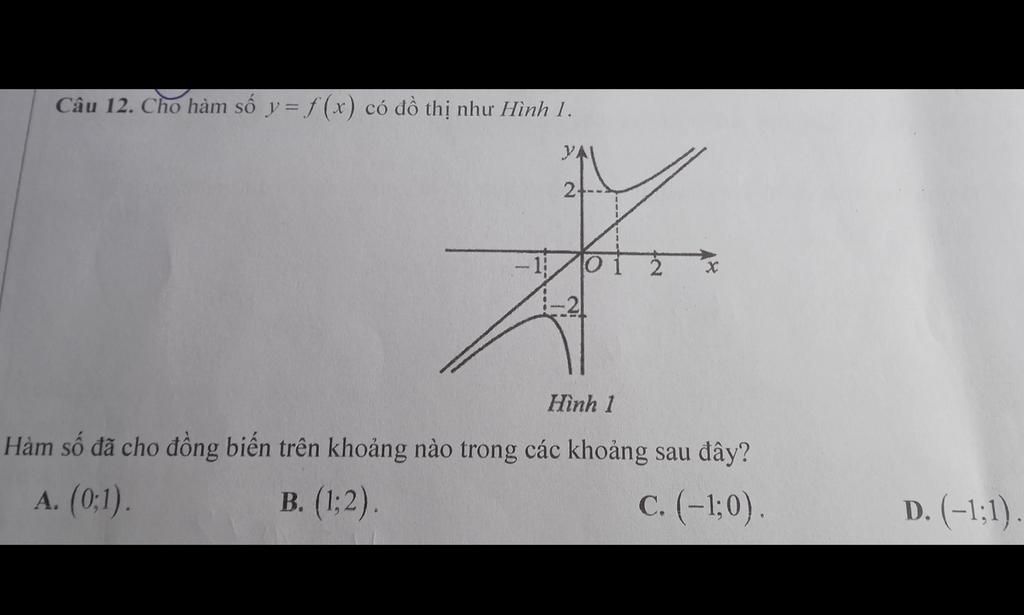 + Nghịch biến : hàm số đi xuống `to x in (-1;0) cup (0;1)`