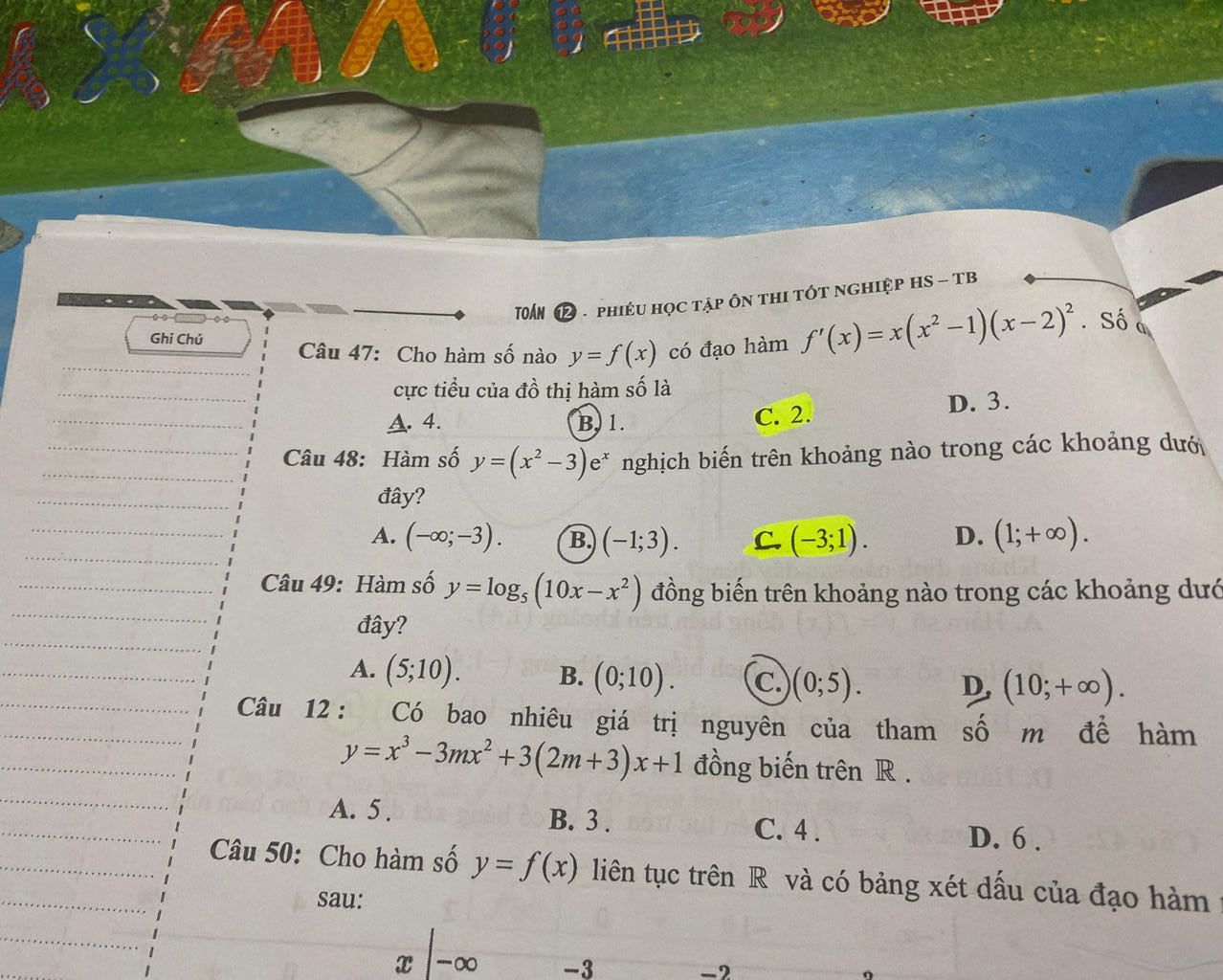 $\to $Hàm số đồng biến trên $(0, 5)$