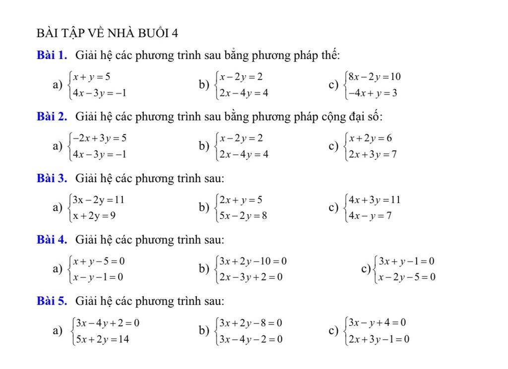 Bài 1. Giải hệ các phương trình sau bằng phương pháp thế