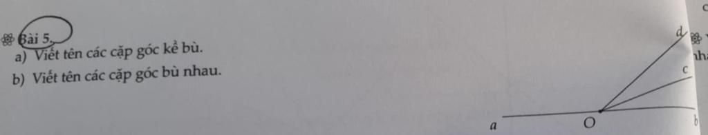 b, các cặp góc bù nhau : aOd , bOd và aOc , bOc