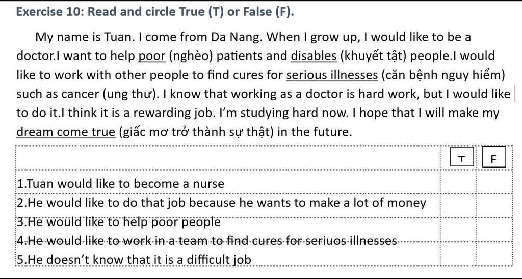 Tuấn muốn trở thành bác sĩ ( doctor ) chứ không phải y tá ( nurse )