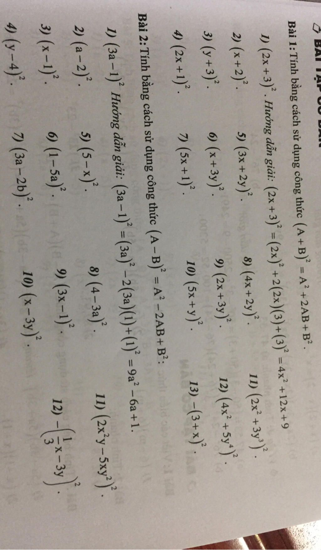 Bài 1: Tính bằng cách sử dụng công thức (A+B) =A? +2AB+Bỉ .