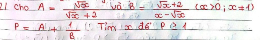 Ta có: `P = A + 1/B` (`x > 0`; `x ne 1`)