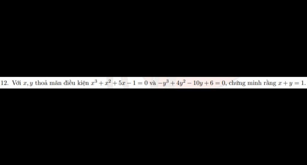 Vậy `x+y=1` khi `x^3+x^2+5x-1=0` và `-y^3+4y^2-10y+6=0`