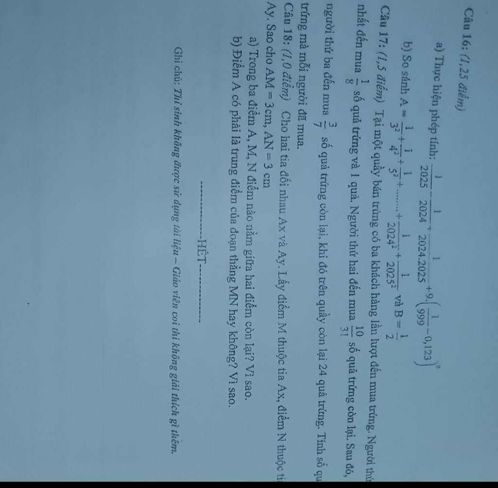 Câu 17: (1,5 điểm) Tại một quầy bán trúng có ba khách hàng lần lượt đến mua trúng. Người thứ