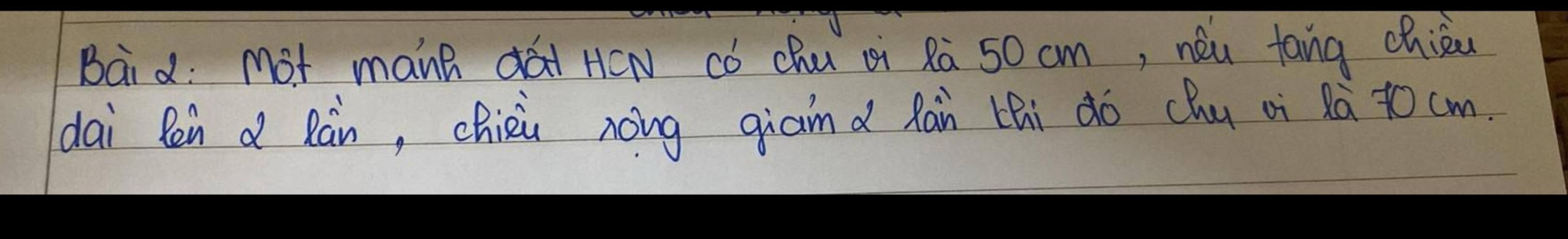 Vì chu vi lúc sau là 70cm, nên ta có: