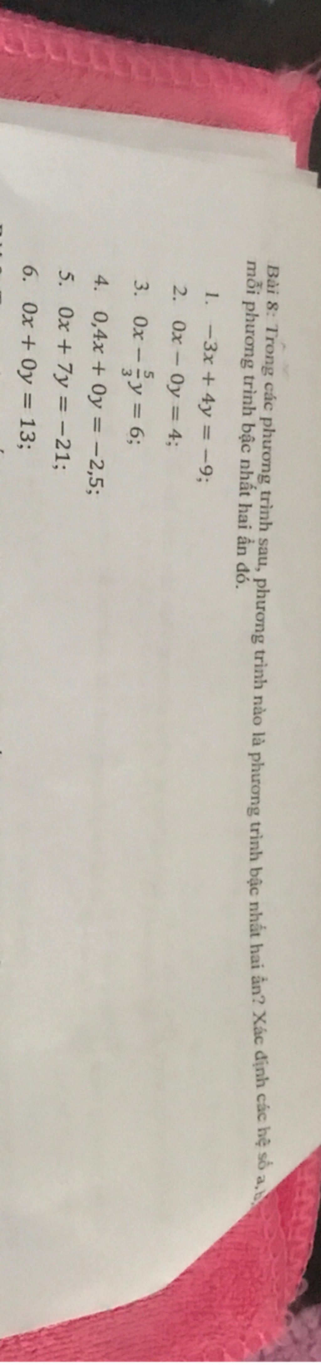 Có `a=b=0` nên không phải là phương trình bậc nhât `2` ẩn