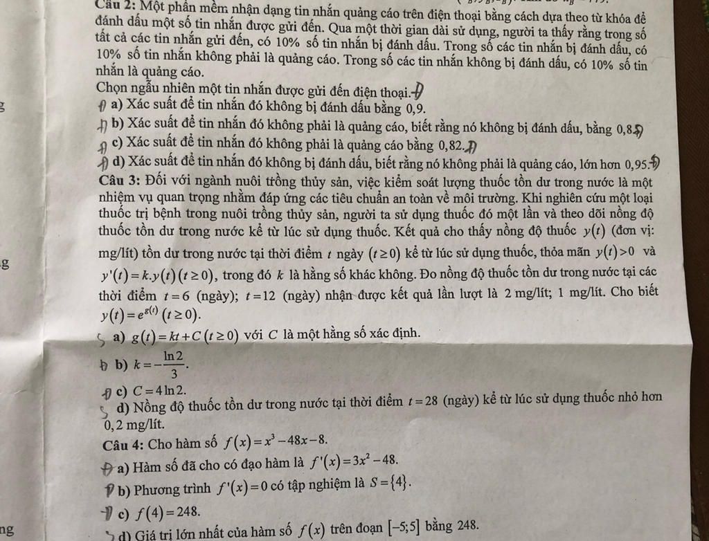 Xác suất để tin nhắn đó không phải là quảng cáo, biết rằng nó không bị đánh dấu là `P(overlineB|overlineA)`