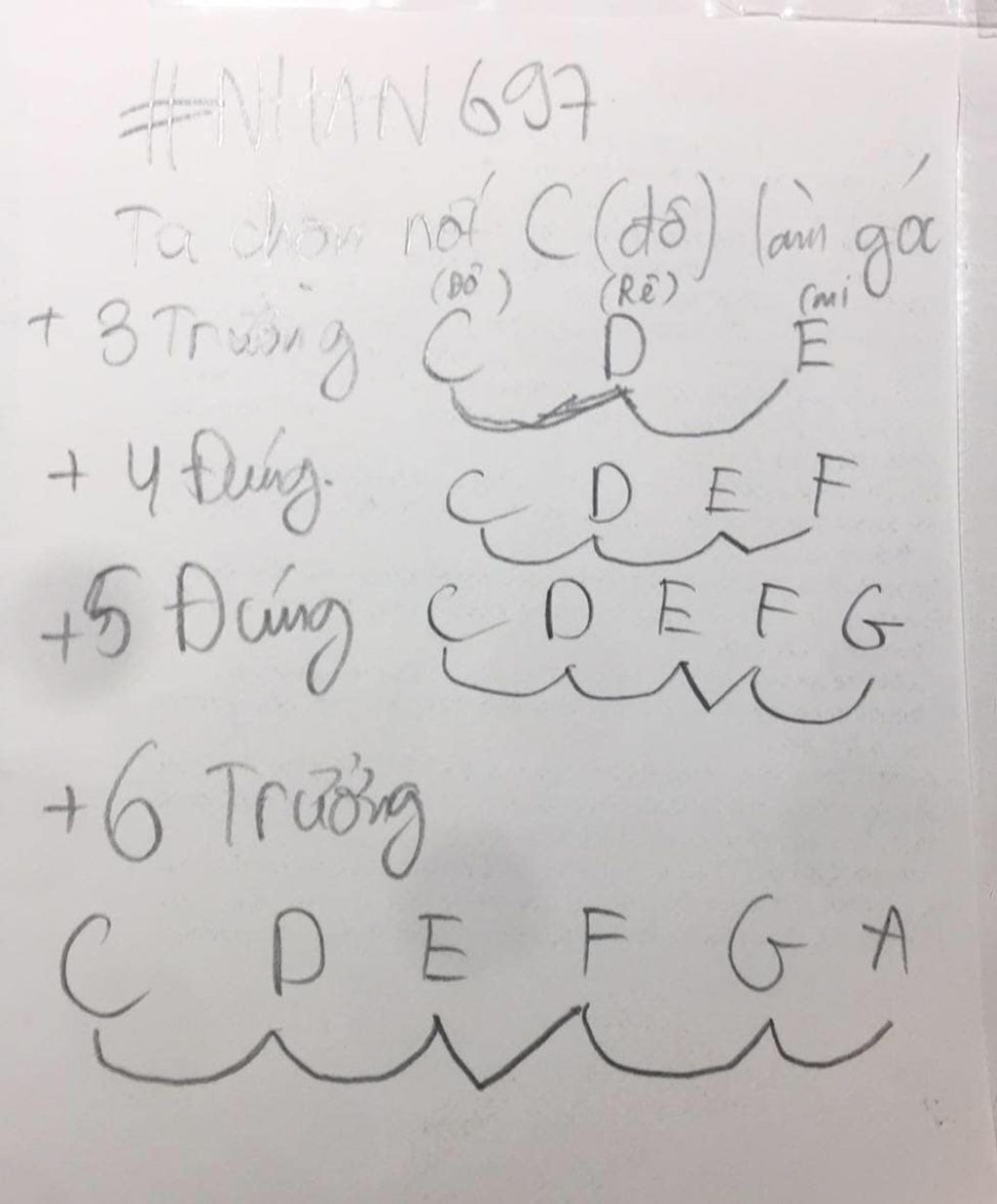 Lấy một âm bất kì làm gốc, hãy thành lập các quãng sau. 3 trường, 4 đúng, 5 đúng, 6 Trưởng
