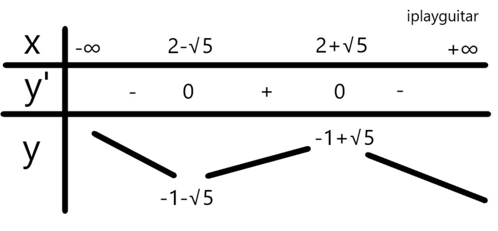 $y' = 0 \Leftrightarrow -2x^2+8x+2 = 0 \Leftrightarrow x^2-4x-1=0$
