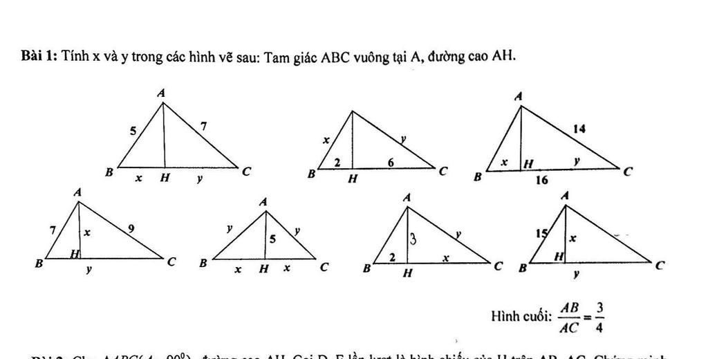 $\Rightarrow \begin {cases} AB^2 = BH \cdot BC (1) \\ AB \cdot AC = AH \cdot BC (2) \end {cases}$