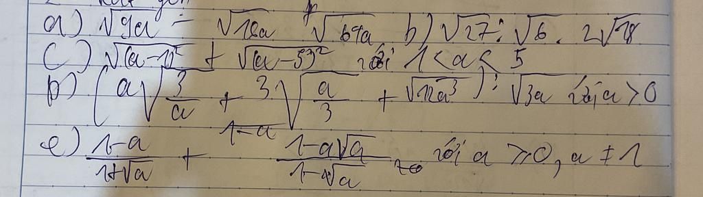 `e)(1-a)/(1+\sqrt{a})+(1-a\sqrt{a})/(1-\sqrt{a})(a>=0,a\ne1)`