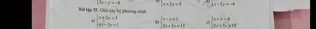 b) `{(x -y = 1),(2x + 3y = 13):}`